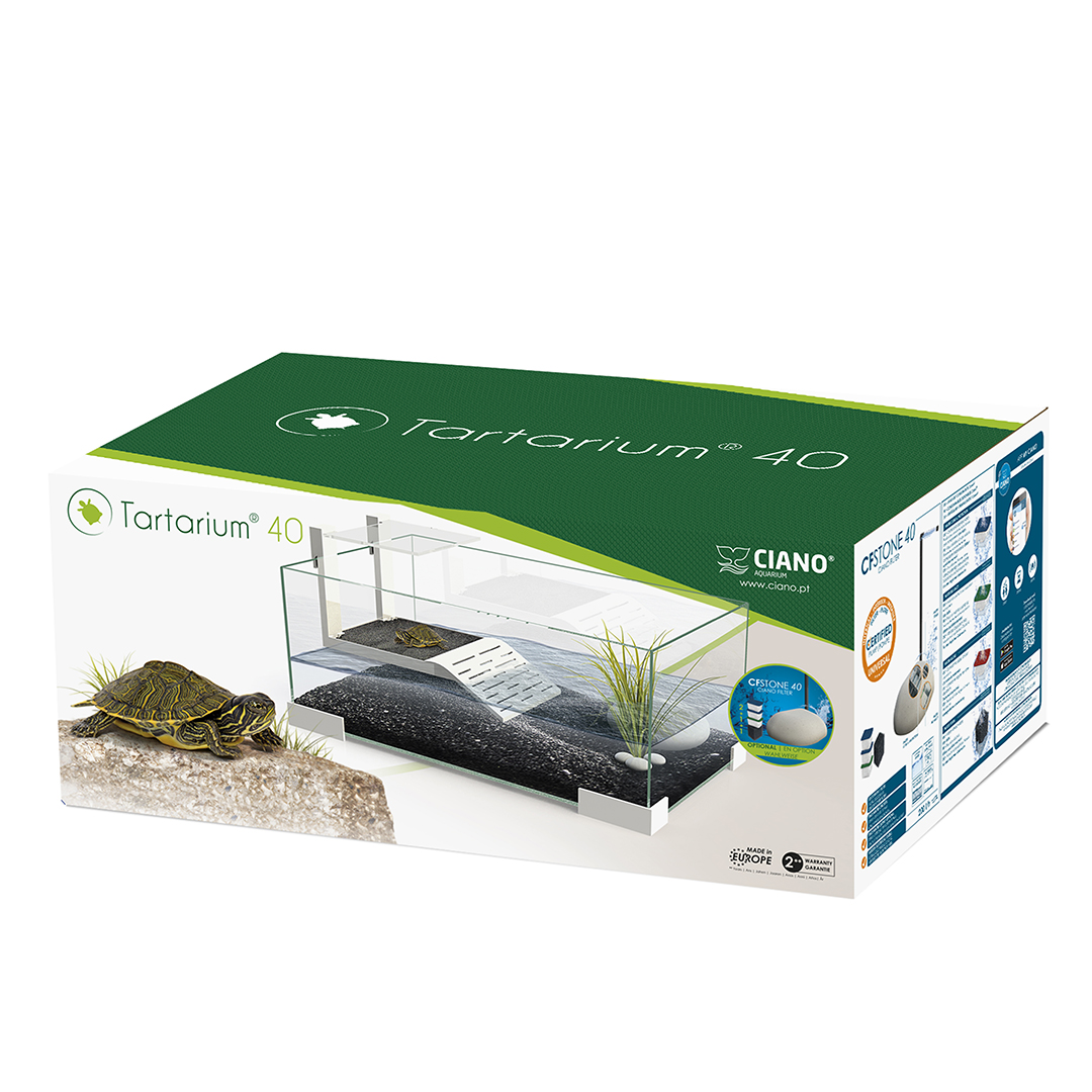 Het Tartarium 40, terrarium glas is uitgerust met steunen en droge zone in wit hoogwaardige plastic met hoogglans afwerking en een doorzichtige plastic cover voor een grote blootstelling aan warmte voor uw schildpad, essentieel voor zijn welzijn en groei. Inbegrepen: 1 Polycarbonaat Deksel, 1 Helling, 4 Kunststof pootjes / wit hoogglans.