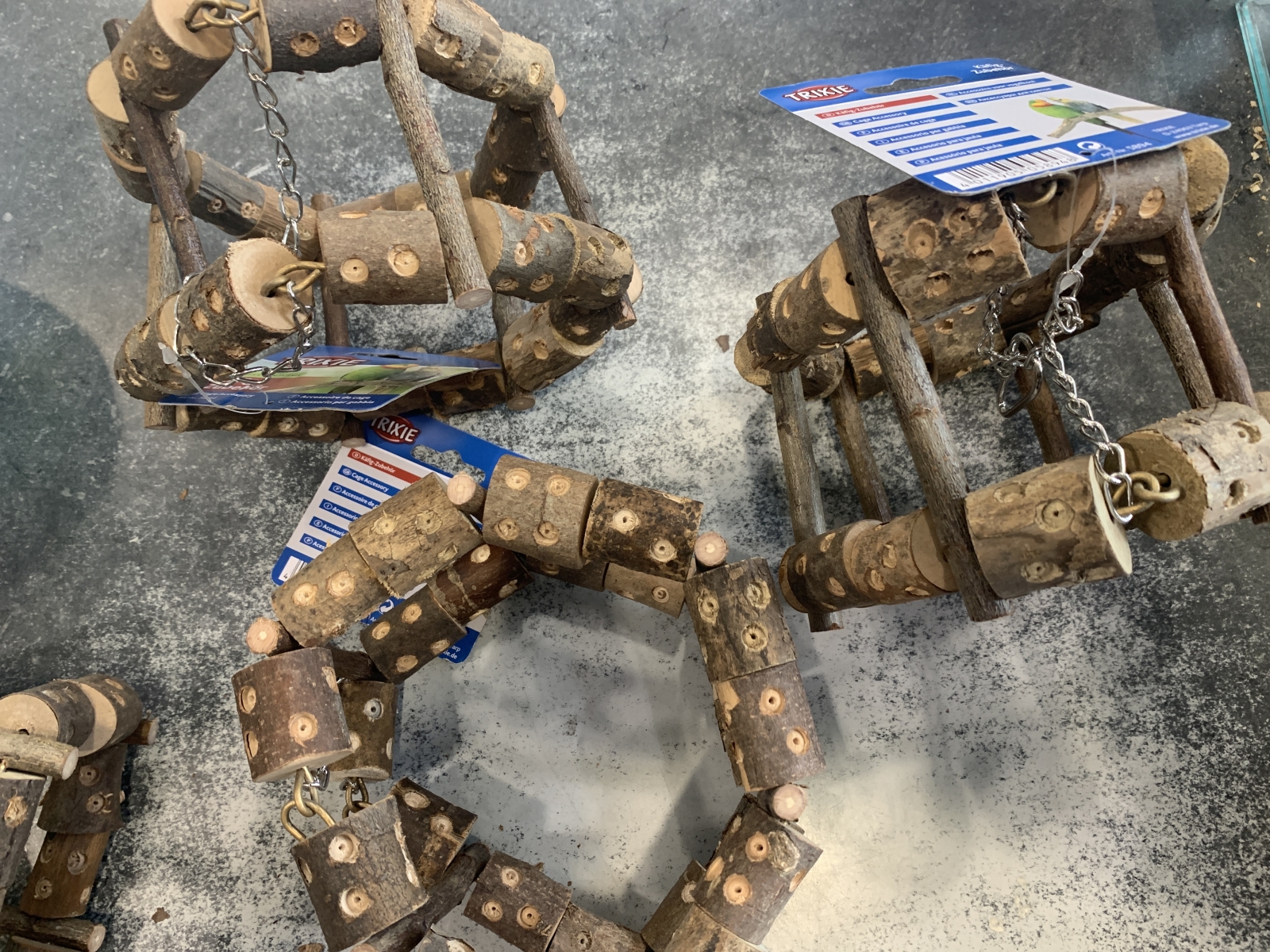 Klauterrek met ketting, schorshout 11 ? 17 ? 11 cm